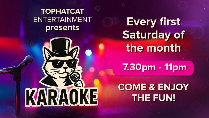 Every first Saturday of the month Tophatcat Entertainment hosts Karaoke at the Club. So mark your calendars, gather your crew and come along for some fun sing alongs, you don’t want to miss it.